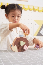 Drveni jež omogućuje djeci vježbati finu motoriku pomoću vijaka u različitim bojama i oblicima.