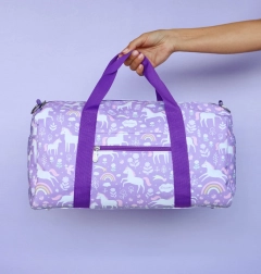 Dječja putna torba dizajnirana za maksimalnu udobnost i funkcionalnost. Opremljena je s dvije ručke za ruku i jednim odvojivim ramenim remenom, što osigurava udobno nošenje. Prostrana glavna komora je dopunjena dodatnim džepom, dva bočna džepa i prednjim pretincem na patent zatvarač, koji pružaju dovoljno mjesta za sve što vaše dijete treba. Torba je idealna kako za sportske aktivnosti, tako i za obiteljske izlete, a može se koristiti i kao ručna prtljaga u avionu. Materijal torbe je lagan, čvrst, i sadrži veseli motiv jednoroga i duge.