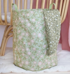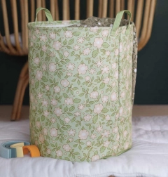 Uljepšajte svoj dom ovom košarom s prekrasnim cvjetnim uzorkom na kaduljno zelenoj podlozi.