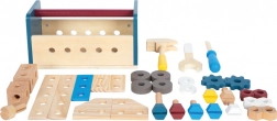 Drveno čekić, ključ i odvijač nadopunjuju vijci, matice i perforirani dijelovi – sve za vježbanje fine motorike i mašte.