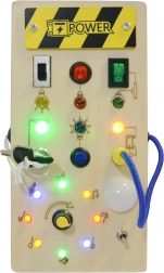 Istražujte svijet elektriciteta te uzroka i posljedice s ovom drvenom interaktivnom pločom. Nudi niz aktivnosti poput prekidača, LED svjetiljki, ključa sa bravom i utičnice s utikačem, koje razvijaju finu motoriku, koordinaciju ruka–oko i znatiželju. Ploča je zabavna i edukativna, svjetla se pale postupno ili odjednom, a prate ih i zvukovi. Potrebne su 2× AAA baterije (nisu uključene u pakiranje).