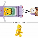 Složite ljubičasti auto s detaljem “Garfield” na boku i priključite prikolicu s tematskim dodacima – idealno za igru i izlaganje.
