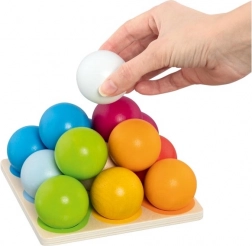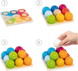 Ova drvena piramida kuglica je idealan alat za razvoj dječjih vještina. Djeca mogu kuglice razvrstavati po bojama i slagati u različite oblike, čime razvijaju svoju kreativnost. Svaka kuglica odlikuje se živopisnim bojama koje djecu uče o raznolikosti boja.