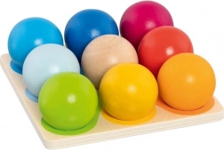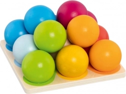 Kuglice promjera Ø4,6 cm i podloga dimenzija 15x15x11 cm idealni su za male dječje ruke. Igračka je izrađena od prirodnog drveta koje je sigurno za djecu.