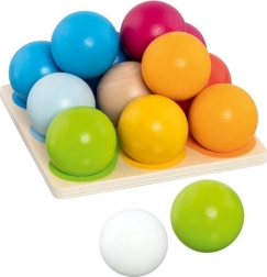 Set sadrži četrnaest šarenih kuglica izrađenih od punog drveta, koje omogućuju razne mogućnosti igre.