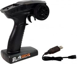 Ergonomski predajnik omogućuje fino doziranje gasa i precizno upravljanje. Frekvencija 2,4 GHz eliminira smetnje, a domet do 80 m daje slobodu pri vožnji. Napajanje 3× AA (nisu uključene).