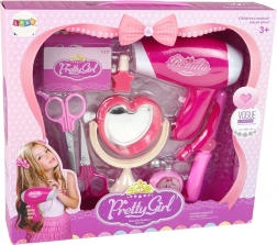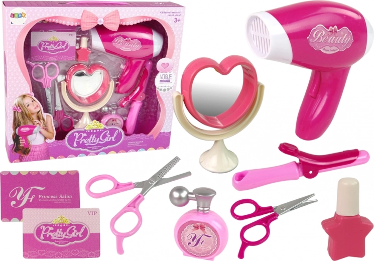 Uključuje srcoliko ogledalo s postoljem, imitaciju uvijača, škare i kozmetičke rekvizite, uz koje djeca mogu osmišljavati nove frizure i “beauty” rituale. Pakiranje je idealno kao poklon za male stilistice od 3 godine.