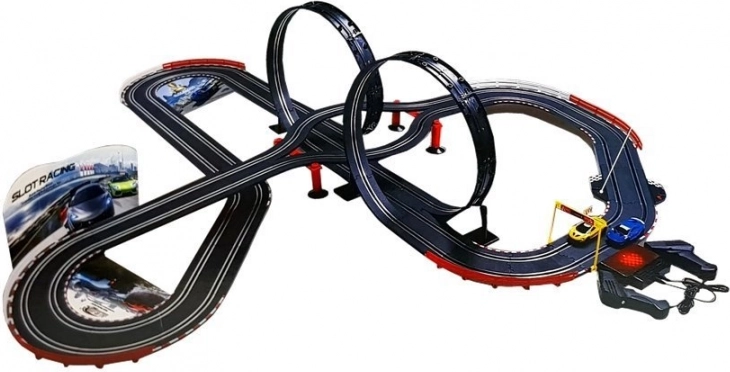 Ova ogromna slotcar trkaća staza oduševit će sve ljubitelje brzine. Zahvaljujući dvjema petljama, dinamičnom rasporedu i oštrim zavojima, vožnja je uvijek napeta. Autića u mjerilu 1:43 imaju prednja LED svjetla, pa su utrke sjajne i pri slabijem osvjetljenju.