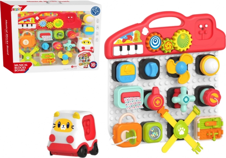 - Raznoliki elementi za istraživanje: Set uključuje dijelove koje se može okretati, pritiskati i otvarati, što potiče dječje kognitivne sposobnosti kroz različite oblike, teksture i boje.