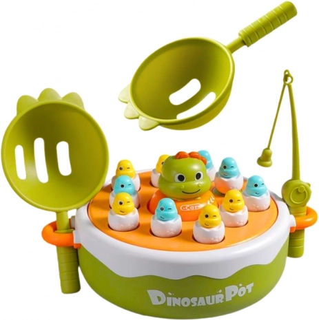 Ova drvena magnetska igra izvrstan je izbor za prve društvene igre. Djeca pomoću štapova s magnetima love šarene dijelove dinosaura, vježbaju preciznost pokreta i koncentraciju, a pritom se odlično zabavljaju.