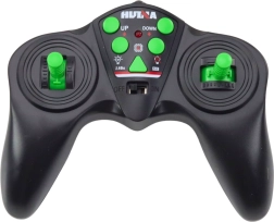 - Napajanje: Vozilo radi na akumulator 3,7V 500mAh (uključen), upravljač zahtijeva 2x 1.5V AA baterije (nisu uključene).