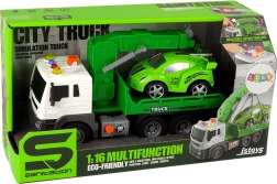 Osim kamiona šlep službe, set uključuje i sportski auto koji je spreman za popravak u vašoj dječjoj radionici. Dimenzije kamiona su 38 cm x 13 cm x 16 cm, a dimenzije sportskog autića su 18 cm x 8 cm x 7 cm. Igračka je napajana s tri baterije AG13 (uključene) i namijenjena je za djecu stariju od 3 godine. Zadovoljava CE i EN 71 standarde.