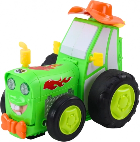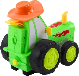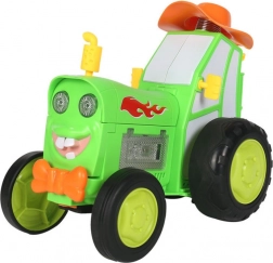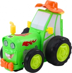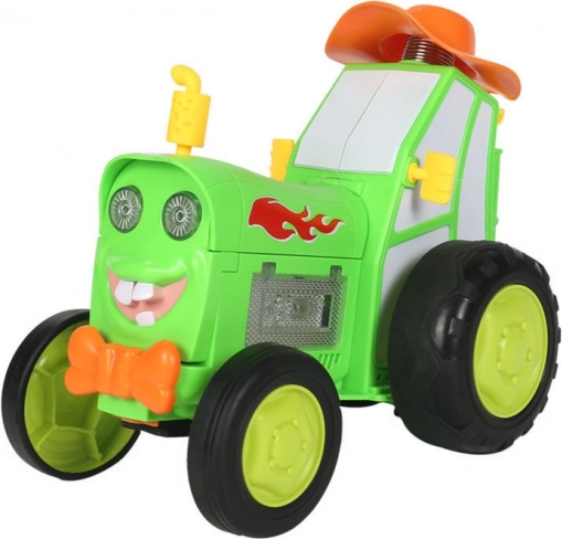 Zabavni zeleni traktor na daljinsko upravljanje donosi djeci sate akcijske zabave. Može voziti naprijed/natrag, skretati, a pritiskom na dvije tipke izvodi akrobatski trik na dva kotača. Tijekom vožnje svijetli i reproducira veselu melodiju, potiče razvoj motorike i koordinacije. Pogodno od 3 godine.