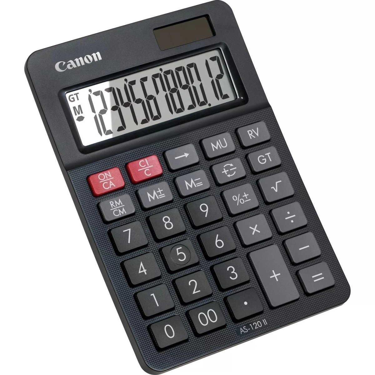 Kalkulator Canon AS-120 II je kompaktan i praktičan stolni kalkulator s 12 znamenki i okomito nagnutim zaslonom, idealan za uredsku uporabu. Nudi funkcije marže, storniranja i zbroja ukupnog, koje olakšavaju izvođenje složenih izračuna. Ovaj je kalkulator i ekološki – pojedini njegovi dijelovi izrađeni su od recikliranih materijala tvrtke Canon.