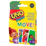 UNO Junior Move je dinamična verzija omiljene igre UNO osmišljena za najmlađe igrače. Spaja pokret, smijeh i brzu kartašku zabavu – pri izlaganju karata djeca izvršavaju smiješne zadatke poput čučnjeva, skokova ili pljeskanja. Jednostavna pravila, šarene karte i akcijski elementi potiču koncentraciju, koordinaciju i zajedničku obiteljsku zabavu.