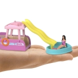 Otkrijte čaroliju svijeta MINI BARBIE LAND s preslatkim mini brodom koji se u trenu pretvara u zabavni vodeni park. Set uključuje brod s odvojivim toboganom i tirkiznim bazenčićem u obliku srca, plus mini lutkicu. Idealan za putovanja, sakupljanje i kreativnu igru. Kompaktne dimenzije, promišljeni detalji i funkcionalni tobogan osiguravaju puno maštovite zabave.