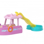 - Brod, odvojivi tobogan, bazenčić u obliku srca, mini lutkica u kupaćem kostimu