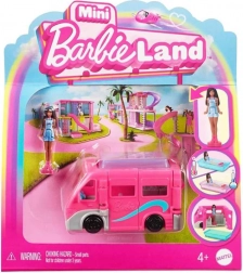 Dio seta je mini lutka (oko 3,5 cm) sa savitljivim strukom, pa može udobno voziti kamper i pozirati. Stabilnost osigurava postolje u obliku srca, kompatibilno s drugim setovima Mini Barbie Land (prodaju se zasebno).