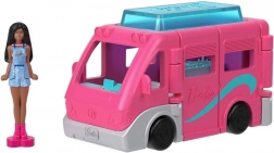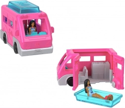 Otkrijte ikoničan putnički stil u mini mjerilu. Mini kamper BARBIE DreamCamper iznenađuje detaljnim interijerom s kuhinjicom, otvarajućim vratima i pametnim spremištem. Odvojivi bazen može se pričvrstiti na krov, a zahvaljujući toplinskom efektu mijenja boju – hladna voda mijenja boju, topla je vraća.