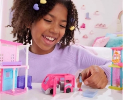 Kamper Mini Barbie Land nudi otvarajuća vrata, detaljnu kuhinjicu i promišljeni interijer za maštovite prizore na putovanjima.