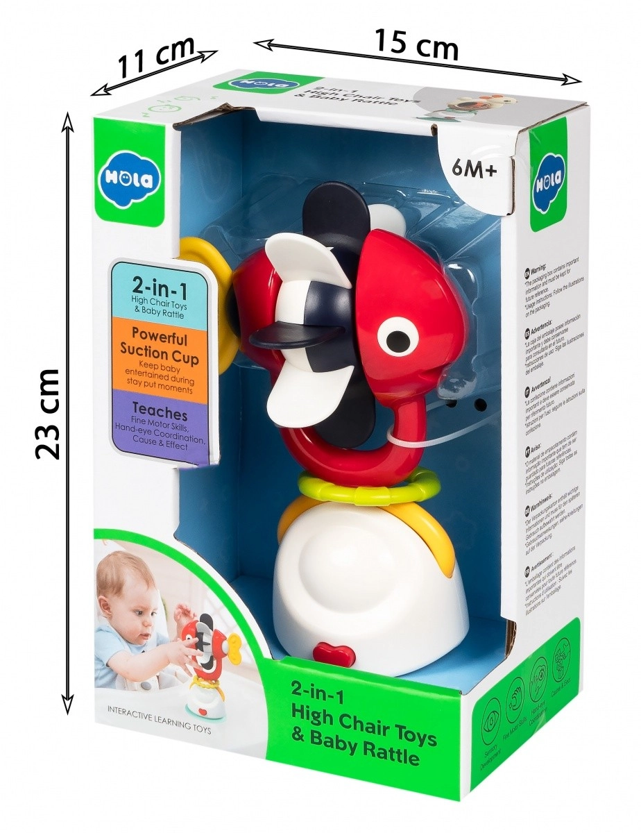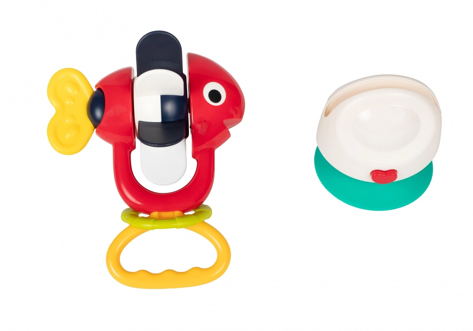 Šarena zvečka 2-u-1 u obliku ribice s čvrstom vakuumskom čašicom zaokupit će bebu kontrastnim bojama, ugodnim zveckajućim zvukom i rotirajućim gornjim dijelom. Stabilno prianja na glatke površine, potiče vid, sluh i finu motoriku te je izrađena od sigurnih materijala bez BPA za djecu od 6 mjeseci.