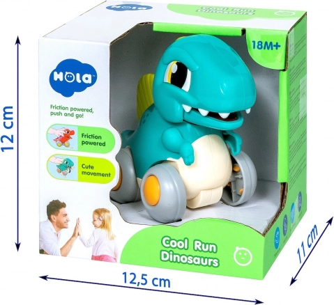 Inercijski frikcijski pogon omogućuje dinosauru da nakon laganog potiska samostalno vozi. Odlično za aktivnu igru i prve utrke na tepihu i podu.