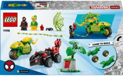 Ovaj set nadahnut serijom SPIDEY I NJEGOVI NEVJEROJATNI PRIJATELJI djeci omogućuje da odmah uskoče u akciju: Spin (Miles Morales) u autu u obliku stegosaurusa progoni Electro na motociklu koji podsjeća na dilofozaura. Zahvaljujući velikim startnim kockama i preglednim ilustriranim uputama, sastavljanje je jednostavno, brzo i zabavno čak i za početnike.