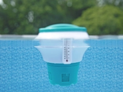 Ovaj dozator idealan je za održavanje čistoće vode i jednostavno mjerenje temperature. Omogućuje sigurnu manipulaciju kemikalijama zahvaljujući ugrađenoj rukavici te nudi precizno doziranje kemikalija putem regulacijskog regulatora.