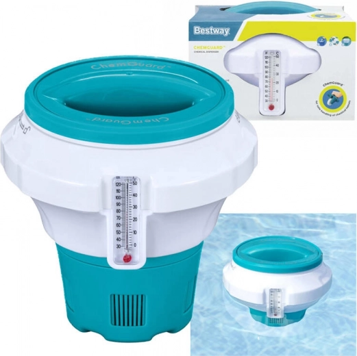 Dozator kemije BESTWAY praktičan je i neizostavan pomoćnik za svakog vlasnika bazena. Ovaj plutajući dozator služi za učinkovitu distribuciju kemije, osigurava održavanje čistoće i kvalitete vode.
