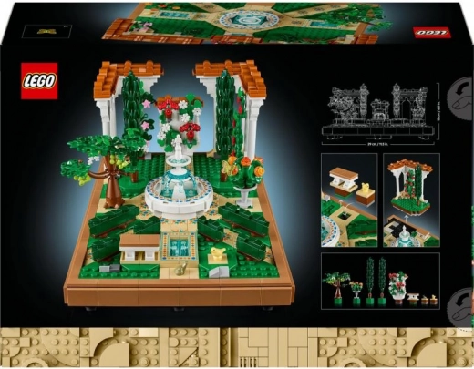 Otkrijte opuštajuće iskustvo slaganja i elegantnu dekoraciju za interijer. Iz seta LEGO Icons sastavit ćete detaljnu vrtnu scenu s pergolama, stablima i višeslojnom fontanom. Modularna konstrukcija omogućuje dijelove po želji preslagivati i pronaći idealan raspored za vaš dom ili ured. Uživajte u gradnji s 1302 dijela i izložite model koji slavi ljepotu vrtne arhitekture, kreativni odmor i elegantan dizajn.
