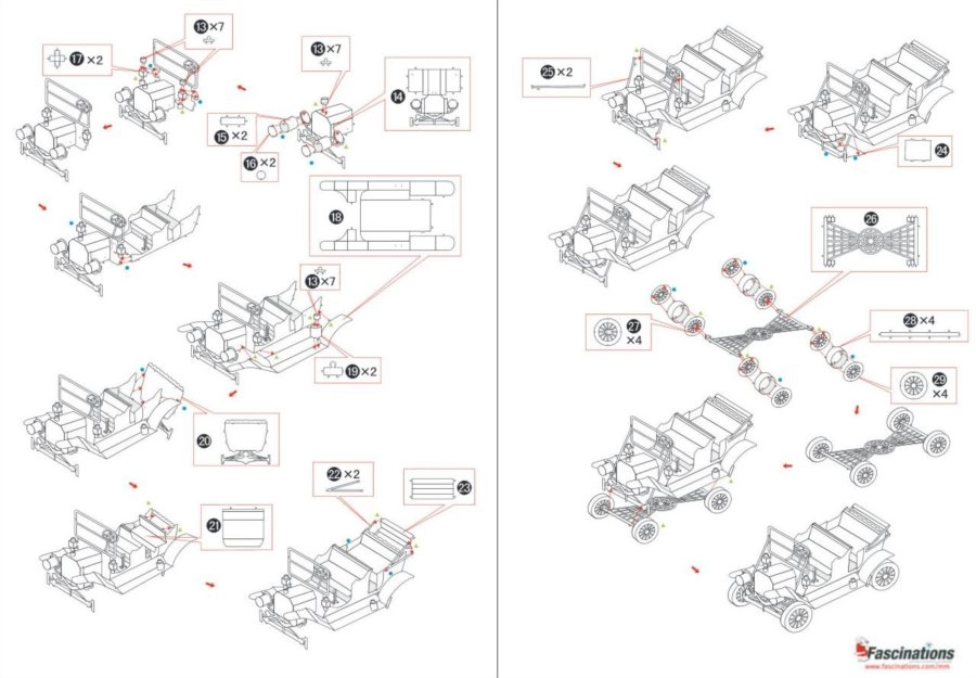 Pakiranje sadrži sve potrebne dijelove koje je potrebno pažljivo izvaditi iz metalnih limova. Dijelovi se spajaju pomoću zasuna – savijanjem jezičaka kliještima (nisu uključene u pakiranje) postiže se jedinstven i realističan model.