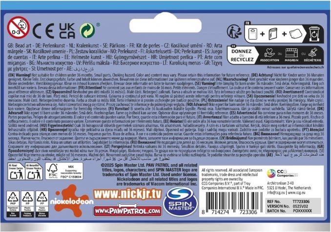 Perličasta slika s omiljenim junacima iz PSIĆA U OPHODNJI sjajan je kreativni set za djecu. Pomoću ljepljivih perlica djeca lako dovršavaju unaprijed otisnutu podlogu i stvaraju vlastiti mozaik. Postupak je jednostavan, zabavan i potiče koncentraciju i strpljenje.