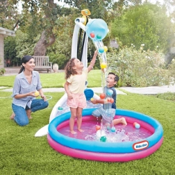 Donesite kući zabavu kao u akvaparku! Little Tikes vodena igraća zona nudi dvostruki slap, napuhujući bazen, interaktivni transporter za vodu i loptice te čak 25 plastičnih loptica za beskrajnu zabavu. Dovoljno je priključiti vrtnu crijevu i pokrenuti prskajuću akciju – ili se igrati u zatvorenom bez vode.