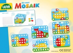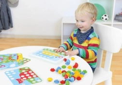 Ova mozaik igra s velikim, glatkim čepićima izvrstan je način da se djecu potakne na razvoj vještina kroz zabavu. Zahvaljujući preglednim predlošcima i perforiranoj ploči djeca uče koordinaciju oko–ruka, vježbaju strpljenje i razvijaju maštu. Veliki dijelovi dobro leže u ruci i sigurno se umeću.
