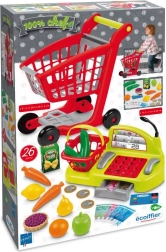 Dječji set za igru trgovine nudi sve što malim prodavačima treba: kolica za kupovinu, blagajnu s novcem, platnom karticom, skenerom i mikrofonom, uključujući voćne i povrtne dodatke te mali ručni košaricu. Odlično za razvoj mašte, socijalnih vještina i motorike.