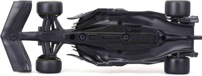 Ovaj službeno licencirani model MERCEDES‑AMG PETRONAS F1 W14 (2023) od Bburaga vjerno prikazuje oblike, boje i detalje bolida sezone 2023, uključujući startni broj 63 za Georgea Russella. Crno bojenje s tirkiznim akcentima, precizni tiskovi sponzora i ikonični elementi poput halo zaštite i krila dodatno naglašavaju realističan izgled.