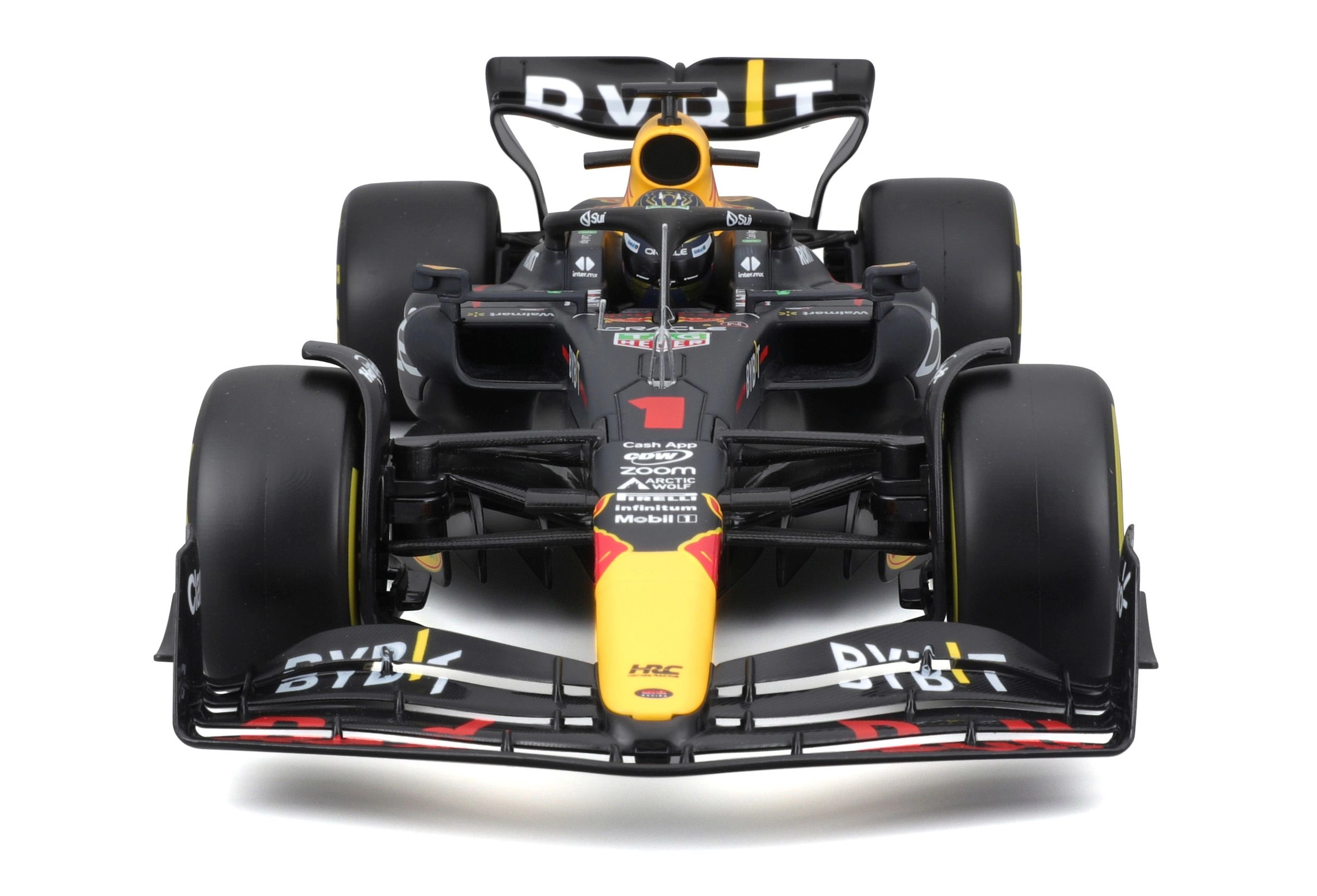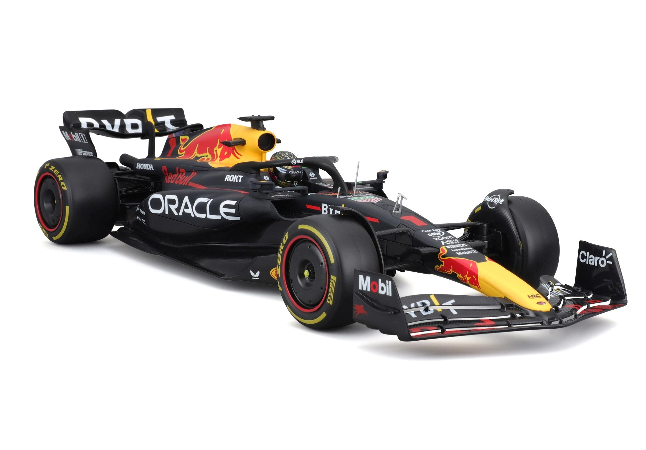 Vjerna replika RB19 s točnim bojama, logotipovima sponzora i detaljima karoserije za maksimalno autentičan izgled.