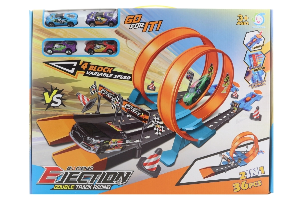 Sjajna dvostruka plastična lansirna staza s 4 razine lansiranja donosi puno zabave i uzbuđenja. U pakiranju se nalaze 4 metalna autića, koja jamče dugotrajnu izdržljivost i odličan doživljaj vožnje. Ova je staza idealna za djecu od 3 godine naviše i lako se sastavlja, tako da djeca mogu brzo započeti s igrom.