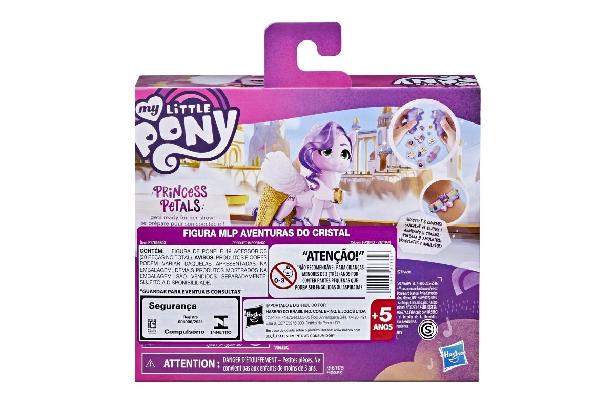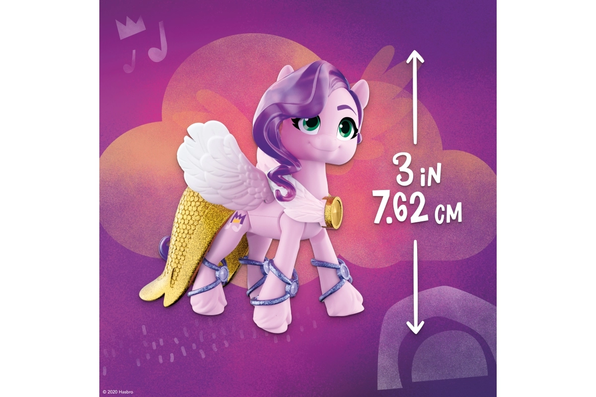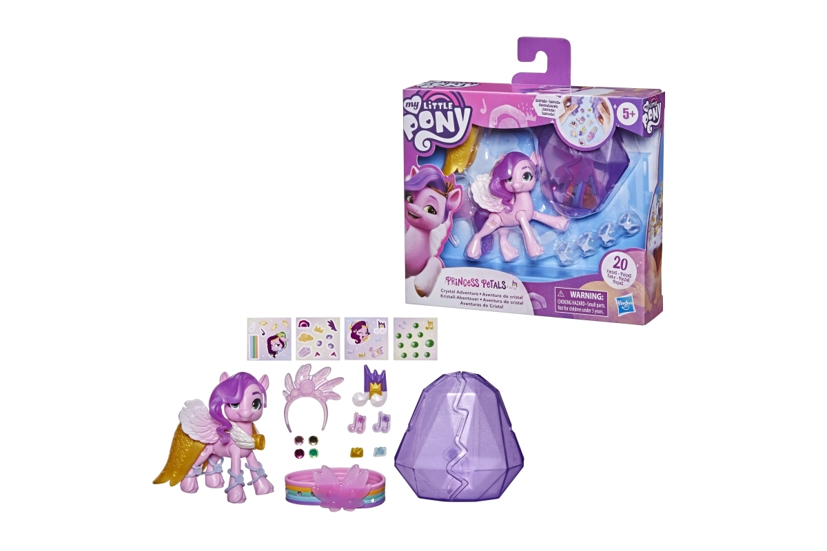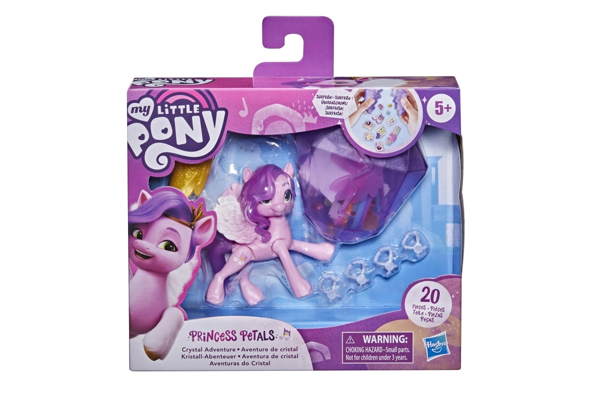 Uronite u svijet MY LITTLE PONY s princezom Petals, elegantnom pop zvijezdom iz serije Crystal Adventure. Ružičasta zglobna figurica visine 3 inča ima ikoničnu ljubičastu valovitu kosu i detaljan Cutie Mark u obliku note. Djeca će uživati u otvaranju višekratnog kristala koji skriva priču i iznenađenja za dodatnu igru.