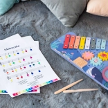 Stol uključuje jedinstvenu kombinaciju instrumenata – ksilofon, bubnjeve, činele i grebalicu, omogućujući širok spektar glazbenih aktivnosti.