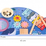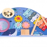 Glazbeni stol je bogato ukrašen motivima oceana i opremljen šarenim elementima koji odmah privlače dječju pažnju.