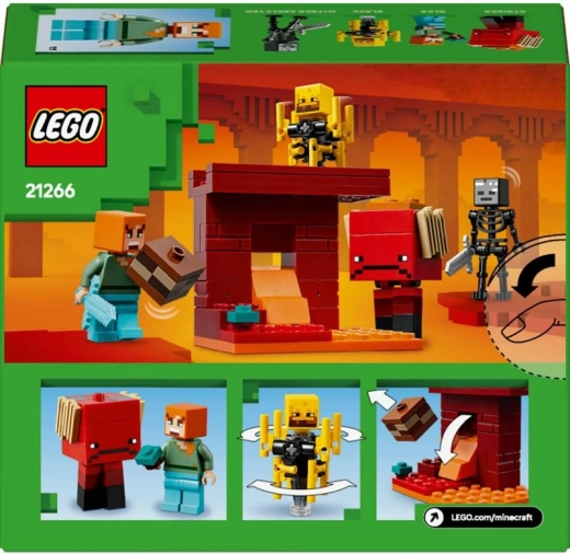Otkrij svijet MINECRAFT uživo s kompaktnim setom LEGO Minecraft Bitka na mostu u Netheru. Dobit ćeš figurice Alex, usukanog kostura, blazea i magmakocke sa sedlom, pomičnim nogama i akcijskim funkcijama. Čeka te prava akcija u Nether tvrđavi, padajuća lava, skupljanje pradavnih ostataka i borba s mobovima legendarnim dijamantnim mačem. Sjajan poklon za djecu od 6 godina.
