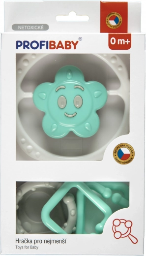 Praktičan set za najmlađe: zvečku–lanac za kolica ili krevetić i zasebnu zvečku u obliku zvjezdice ili cvjetića. Podržava razvoj sluha, vida i dodira, prirodno vježba refleks hvatanja i dizajnirana je s naglaskom na sigurnost – bez oštrih rubova i bez otpuštajućih sitnih dijelova. Dostupno u različitim bojama i u 2 motiva.