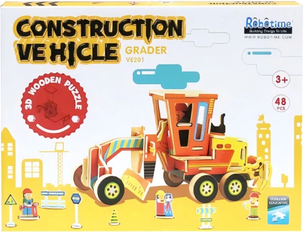 Ova drvena 3D slagalica građevinskog stroja – grejdera – idealan je izbor za prvi susret djece sa svijetom modela. Zahvaljujući niskoj zahtjevnosti i priloženim detaljnim uputama, bez poteškoća će je savladati i početnici. Precizno izrezani dijelovi s tiskom u boji točno se uklapaju, pa je slaganje ugodno i zabavno.