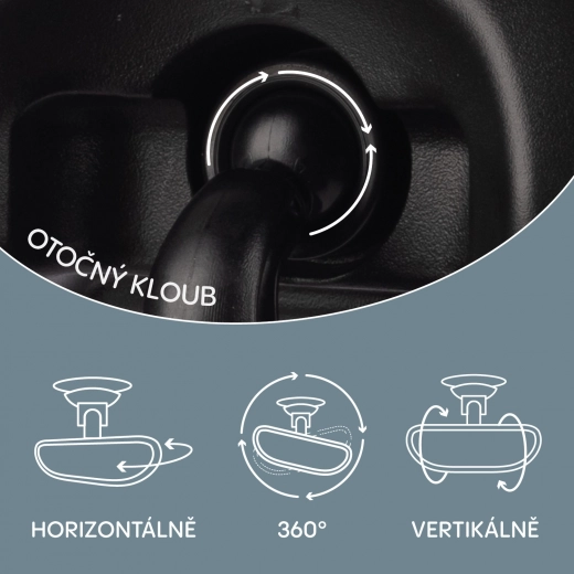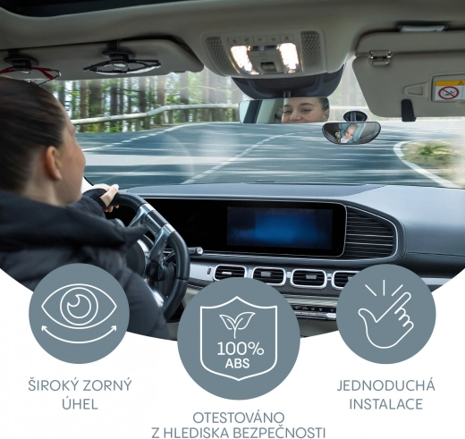 Ovo kompaktno retrovizorsko zrcalo savršen je dodatak za roditelje koji žele imati nadzor nad svojim djetetom koje sjedi na stražnjim sjedalima. Zahvaljujući ispupčenom dizajnu nudi široko vidno polje, što omogućuje lakše praćenje i tijekom vožnje. Rotacija od 360° omogućuje prilagodbu položaja zrcala točno prema vašim potrebama.