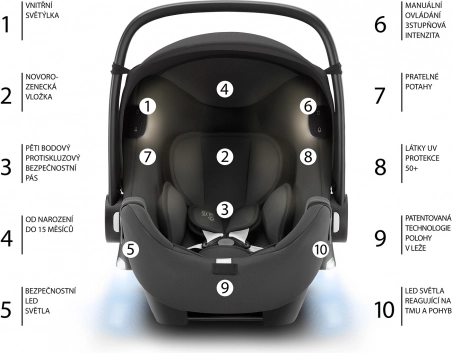 Radost putovanja povećavaju i inteligentna svjetla koja se automatski aktiviraju u tamnijim uvjetima. Pomažu pri kretanju s kolicima i osiguravaju sigurnu vidljivost. Svjetla u autosjedalici automatski se pale i nakon sigurnog pričvršćivanja se gase. Mogu se upravljati ručno, s podesivim intenzitetom svjetla, te pružaju ugodno osvjetljenje interijera radi lakšeg rukovanja.