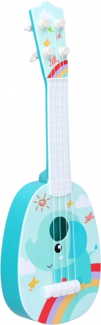 Kvalitetna dječja gitara s motivom afričkih životinja, četiri žice, duljina 37 cm, varijante slon i žirafa. Idealna za male glazbenike.