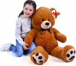 Slatki plišani medvjed Kuba duljine cca 100 cm izrađen je od kvalitetnog mekane pliša u tamnosmeđoj boji. Krasi ga saten mašna, a dio pakiranja je i kartonska viseća etiketa u obliku srca za osobnu posvetu. Prikladno za djecu od 0 godina – savršen poklon za male i velike.