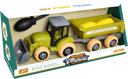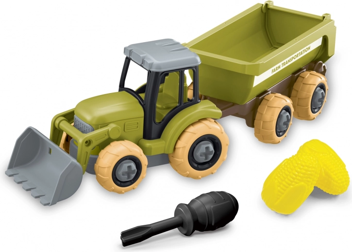 Zabavna građevna igračka za male tehničare: ovaj vijčani traktor s utovarivačem i prikolicom može se pomoću priloženog dječjeg odvijača lako rastaviti i ponovno sastaviti. Potiče tehničku spretnost, kreativno razmišljanje i finu motoriku. Izrađen od kvalitetne plastike, ukupna duljina seta je približno 27 cm.