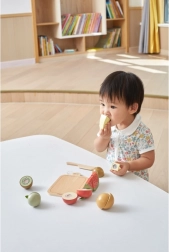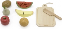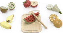 Predstavljamo vam nevjerojatan set drvenog voća za rezanje, koji je idealan za male kuhare i šefove kuhinje! Ovaj set sadrži dasku, nož i šest komada različitog voća koji su podijeljeni na polovice i spojeni čičkom. Djeca na taj način mogu stvarati vlastite kombinacije voća i sigurno vježbati rezanje.